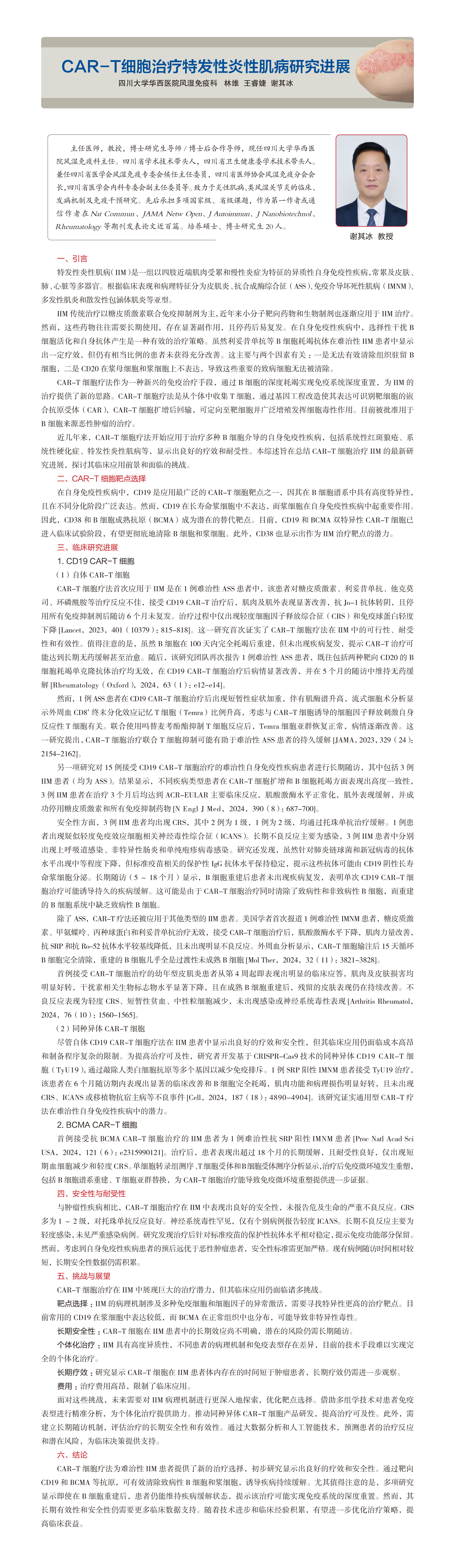 CAR-T细胞治疗特发性炎性肌病研究进展
