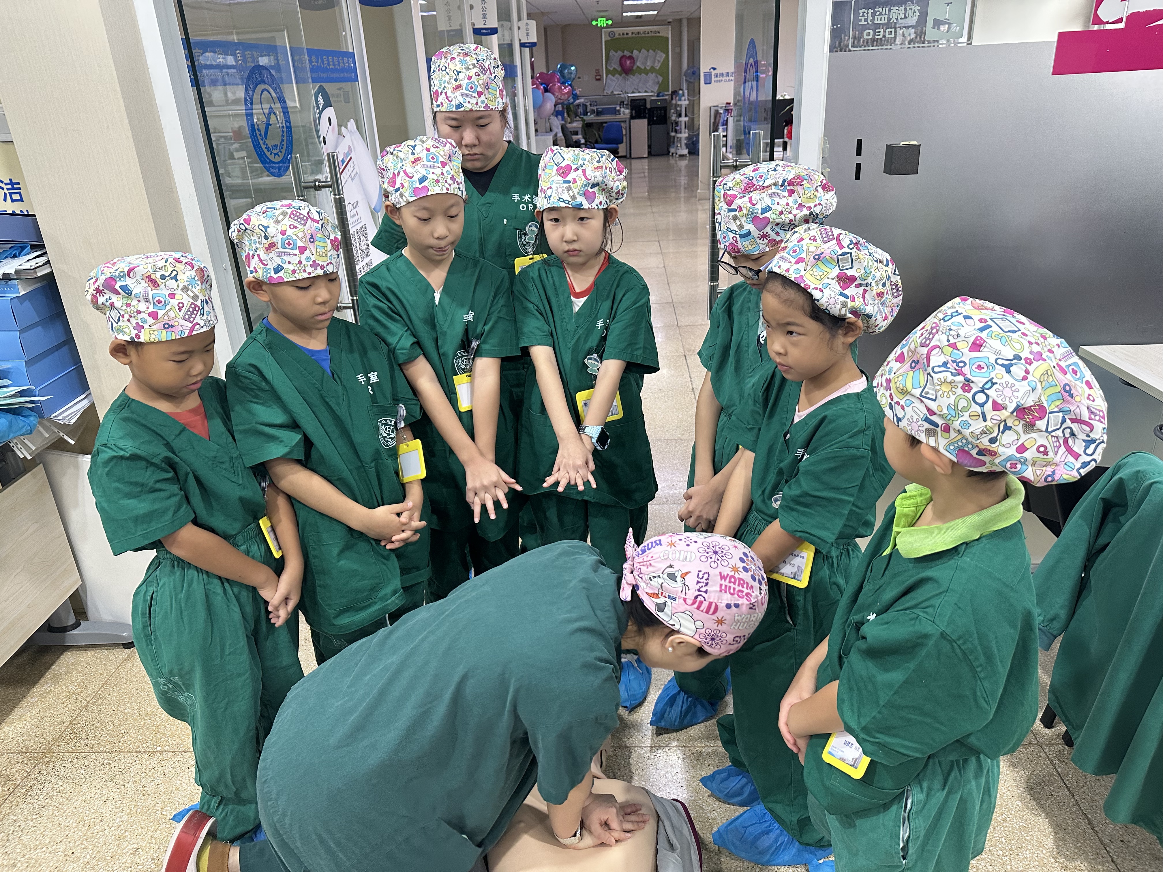 2025年8月23日,北京大学人民医院麻醉科举办的第十四期“手术室麻醉学院”科普活动中,由指导老师向“医二代”学员们介绍并演示心肺复苏的操作流程,在心外按压部分,学员们听课聚精会神,并模仿老师的样子十指相扣,一颗期待自己也能像父母那样,救治病患的名为“医学梦想”种子悄然在这堂启蒙课上种在“医二代”的心里。